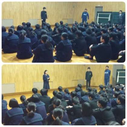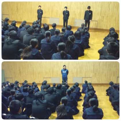 3月1日(金)、3年生は朝の学年集会を行いました。早いもので、3年生にとっては、今日が最後の「朝の学年集会」です。