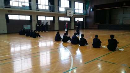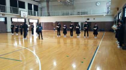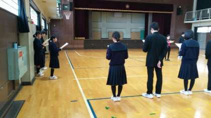 3月1日(金)、1・2年学年末テスト終了後、生徒会執行部役員、1・2年男女学級委員長が体育館に集まり、3月6日(水)5時間目に実施する「卒業生を送る会」のリハーサルを行いました。