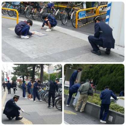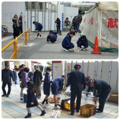 京阪京橋駅・JR 京橋駅の駅員の皆さんと一緒に30分ほど清掃活動に取り組み、たくさんのゴミを集めました。