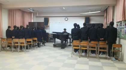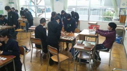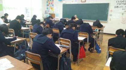 4時間目、1組は国語の授業で百人一首、2組は音楽で卒業式の歌の練習、3組は理科で公立一般選抜に向けて練習問題に取り組んでいました。それぞれの教科で最後の授業です。