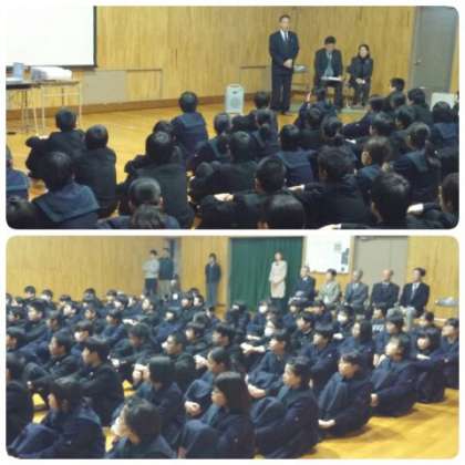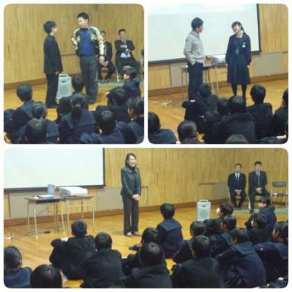 3月8日(金)5時間目、1年生は武道場で薬物乱用防止教室に取り組みました。
