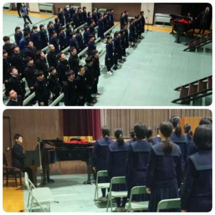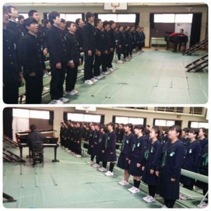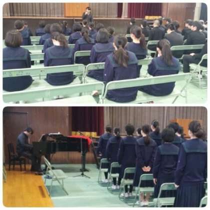 最後には、卒業生代表でピアノ伴奏をする柴田君の伴奏で、歌の練習を締めくくりました。昨年度より少ない卒業生ですが、迫力のある素晴らしい歌声が体育館に響いていました。