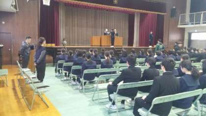 3月13日(水)1時間目、3年生は卒業式予行の前に3年生だけでの卒業式練習に取り組みました。