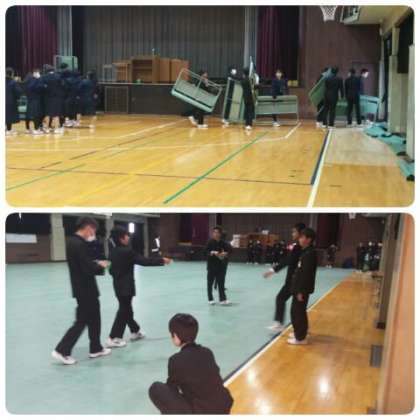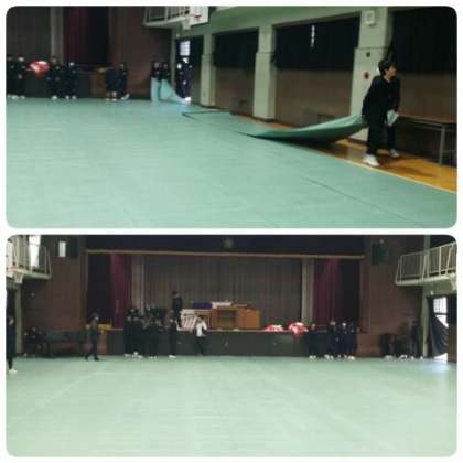 2年生は大掃除と並行して体育館の準備に取り組んでくれました。長椅子を外に出し、シートをいったん外して掃除し、再度シートを引くまでを4時間目の終わりまでに完了してくれました。