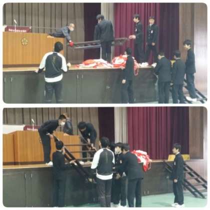 卒業式に参列する在校生代表生徒は、昼食後、引き続き卒業式準備に取り組みます。