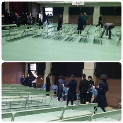 明日の卒業式に参列する2年生の代表生徒は、昼食を食べた後、体育館の準備です。