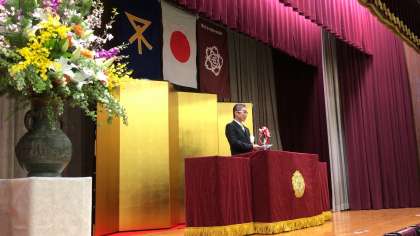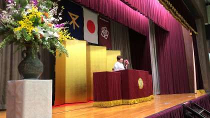 PTA会長・同窓会会長祝辞です。PTA会長・森様、同窓会会長・松下様からそれぞれ子どもたちへの激励の言葉をいただきました。