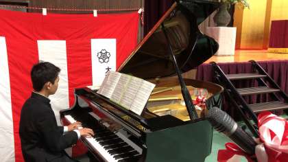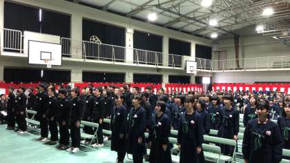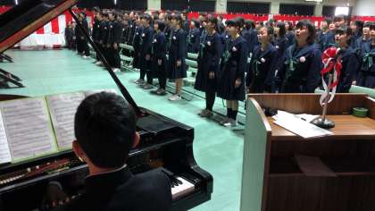 式歌「旅立ちの日に」斉唱です。ピアノ伴奏は柴田君。心に響く素晴らしい歌声が式場内に響き渡りました。