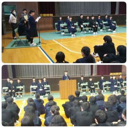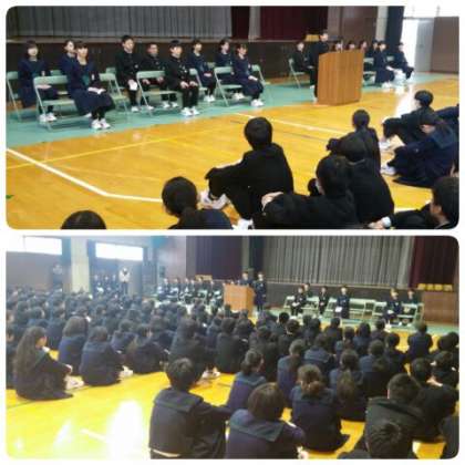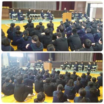 3月15日(金)6時間目、体育館において平成31年度前期生徒会選挙立合演説会が行われました。