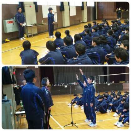3月18日(月)、2年生は本校体育館で球技大会(バレーボール)を行いました。体育係を中心に準備を進め、いよいよ本番です。