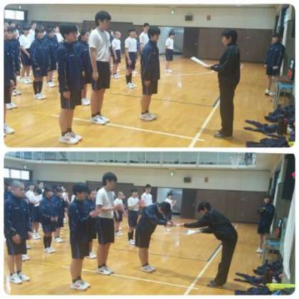 学年主任の江野先生から、各クラスの体育係の代表に表彰状が授与されました。