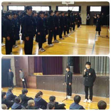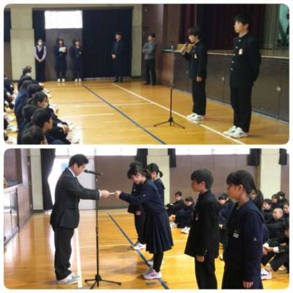 3月22日(金)、修了式の前に、体育館において平成31年度生徒会前期執行部役員の認証式を行いました。