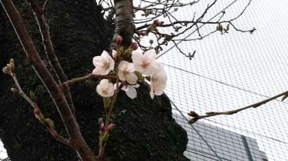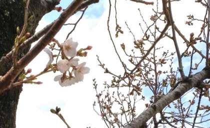 ほとんどの蕾が大きく膨らみ始め、今日、数枚の桜の開花が確認できました。