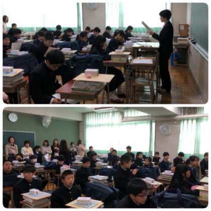 担任の先生から教科書や各種プリントが配られ、これからの中学校生活について話がりました。