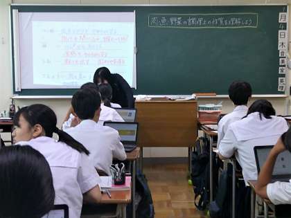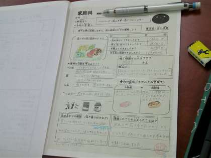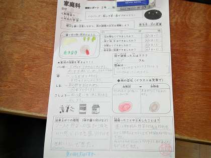 2年生の家庭科では、1学期の終わりにハンバーグ作りをしました。