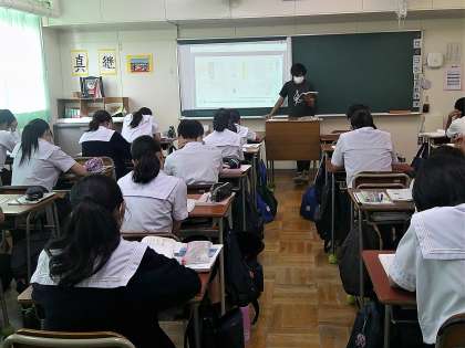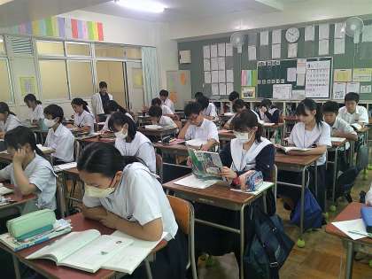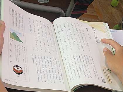 その後、的場先生に続いて、子どもたちが繰り返し音読しています。
