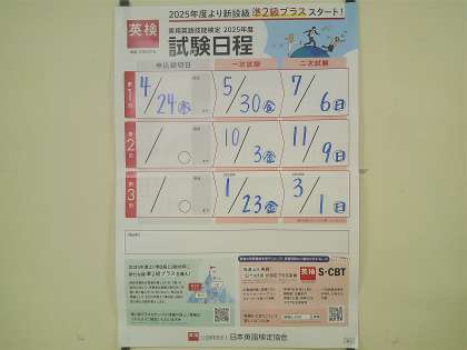 本校では各学期に1回、年間3回の『英検』を校内で行っています。