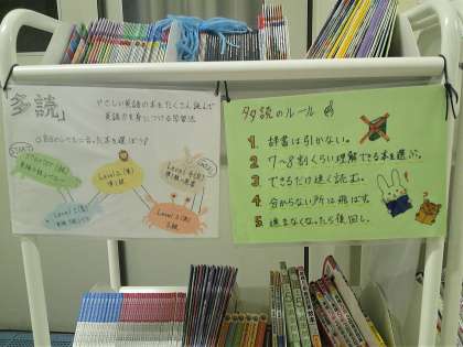 英検対策として問題集もたくさん揃えており、多読・多聴活動にも力を入れています。
