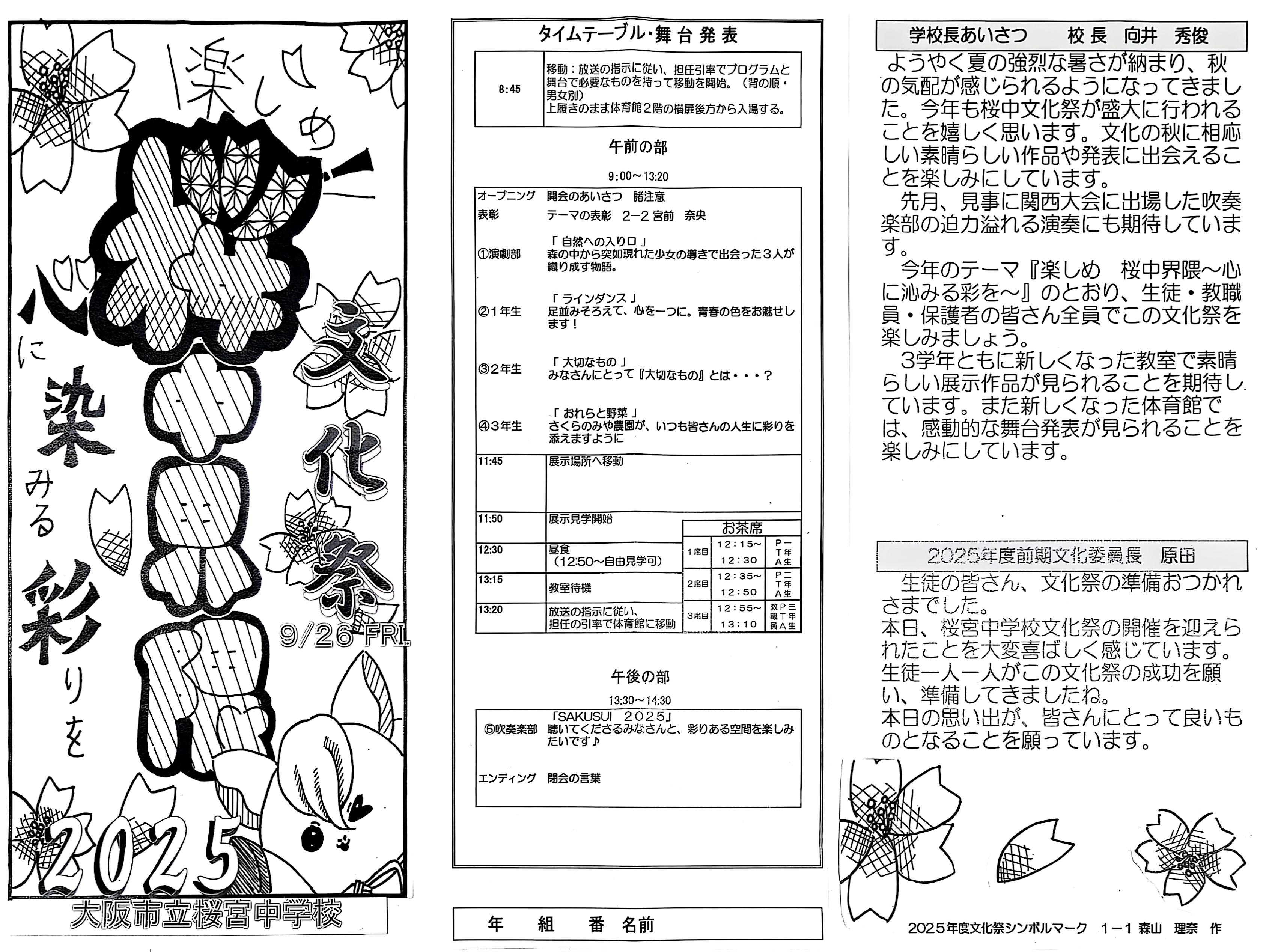 9月26日(金)の令和7年度文化際についてお知らせいたします。お越しになる際は上履きと保護者証のご用意を、お願いいたします。