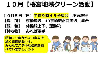 10月地域クリーン活動のご案内になります。