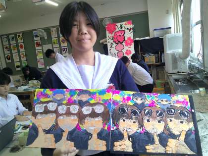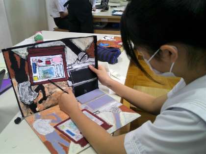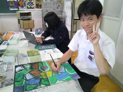 3年生の美術では『3年間の思い出』の版画を制作しています。