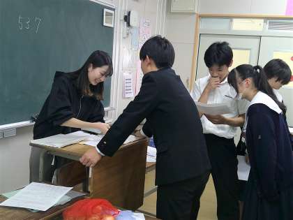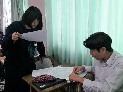 自分の解答用紙を持って、上中先生に質問に行っていますね〜。