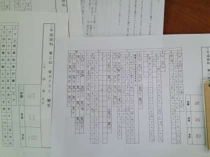 3年生の国語では、先週行われた『第3回実力テスト』の結果を返却しています。