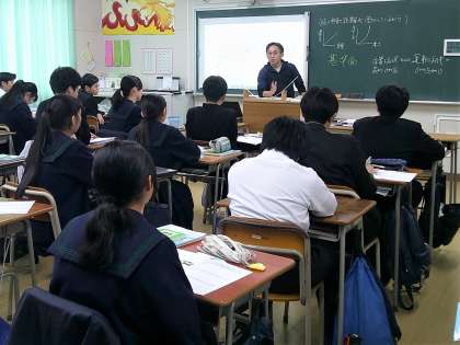 実験を見せながら質問をして、それに子どもたちが答えています。