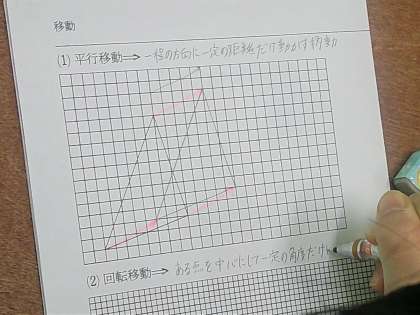 1年生の数学では『図形』の平行移動と回転移動を学んでいます。