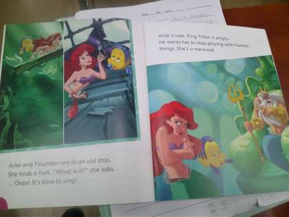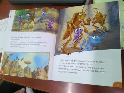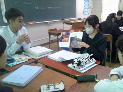 2年生の英語では『自分にとっての面白い本を紹介しよう』と、グループで発表しています。