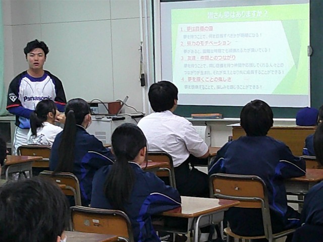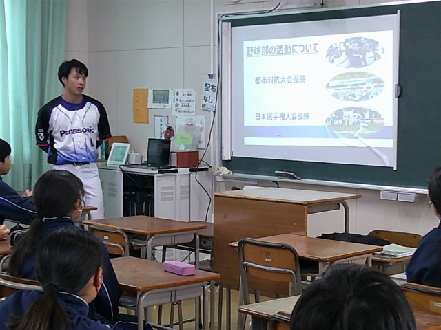 1年生は午後から、パナソニックの野球部の方々を講師として『野球教室』を行いました。