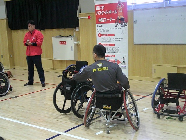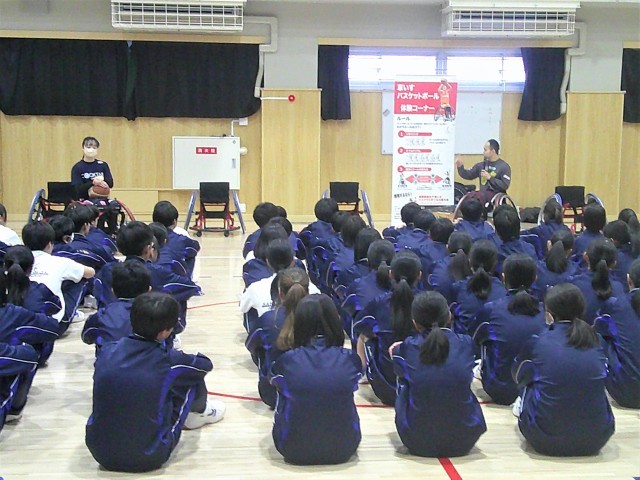 今日は2年生は5時間目に、1年生は6時間目に『車いすバスケットボール』の体験授業を行いました。