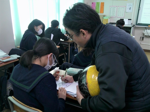 子どもたちの間を歩きながら、小野先生が質問に答えています。