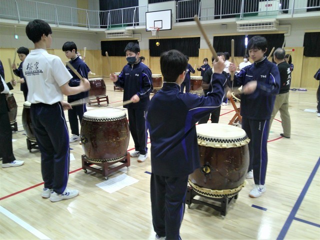 本校には20台の立派な宮太鼓があります。