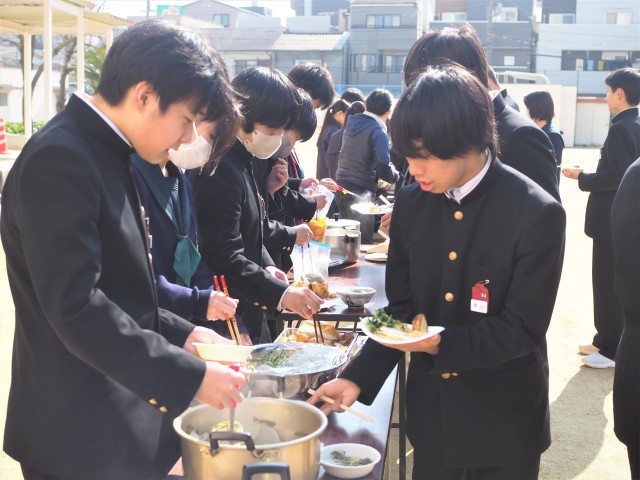 午後から運動場で、美味しくいただきました。1年生の時から恒例となった収穫祭ですが、これが最後となります。一生の思い出となることでしょう。