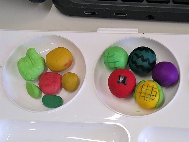 3年生の美術では『たべものミニチュアストラップ』を作っています。