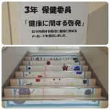 3年保健委員が作成した階段アートです。健康に関するメッセージを掲示しました。 ...