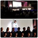 最後に、全員合唱「輝くために」を歌い、学年劇「未来〜輝くために〜」を締めくくり...
