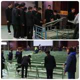津波警報解除とともに、3階の廊下、教室から体育館に移動しました。 体育館に全...