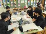 先輩の作品を見て、思ったことや感じたことを書いています。 その後は、班での意見交...
