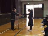 12/19(月)全校集会でソフトテニス部が第2回泉尾杯ソフトテニス研修会において...