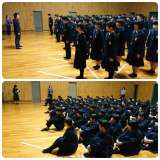4月19日(金)3年生は朝の学年集会を行いました。 梅津先生の集合指揮で整列...