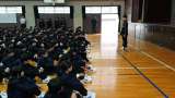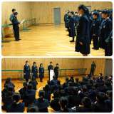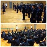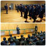 4月22日(月)体育館において全校集会を行いました。 生徒会役員の集合指揮、...