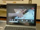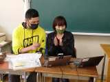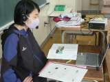 3年生の英語では、課題の提出の仕方を説明しています。 オンライン上で、タブレット...
