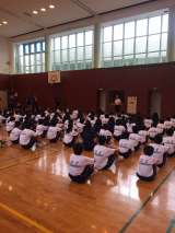 1年生が一泊移住を終えて京都府立青少年海洋センターから学校へ帰ってきました。大き...