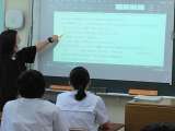 2年生の英語では、模範解答を配り、スクリーンを使って解説をしています。 先生方...