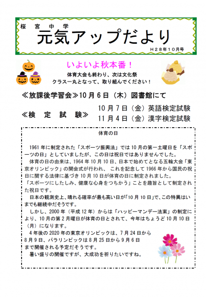 9/29(木)本日行われます「体育大会」ですが、予定通り行います。生徒の皆さんは...
