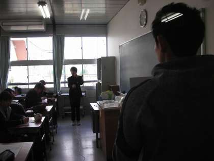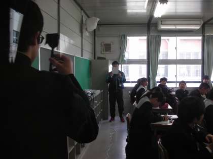 教室で視力検査をしているところです。