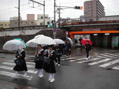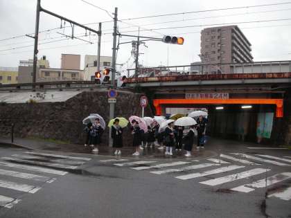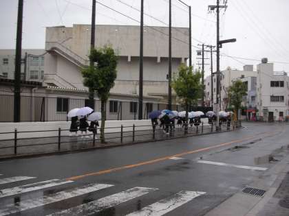 今日は、雨がしっかりと降っているので、みんな傘をさしています。