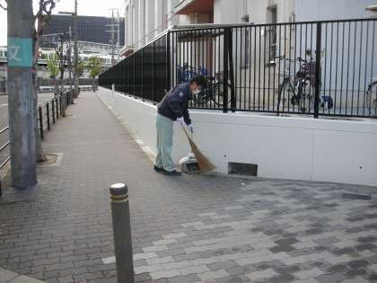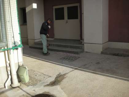 毎朝、校内及び学校周辺を清掃してくださっています。この季節は、桜の花びらが一杯散っているのですが、きれいに掃きとってくださっています。